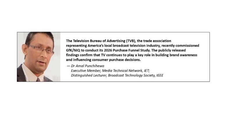 The Television Bureau of Advertising (TVB), the trade association representing America’s local broadcast television industry, recently commissioned GfK/NIQ to conduct its 2026 Purchase Funnel Study. The publicly released findings confirm that TV continues to play a key role in building brand awareness and influencing consumer purchase decisions.
