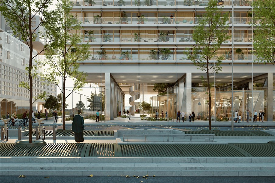 The T6B project delivers 177 luxury apartments built on a 50-meter span over the railway. It is a superb location right opposite the Bibliothèque François Mitterrand with excellent access to public transport and a superb view over the River Seine and Paris skyline. The architectural style reflects the premium location and high price of the apartments. It features elegant open spaces on the first two floors that will host retail units and ten floors of apartments constructed in timber.