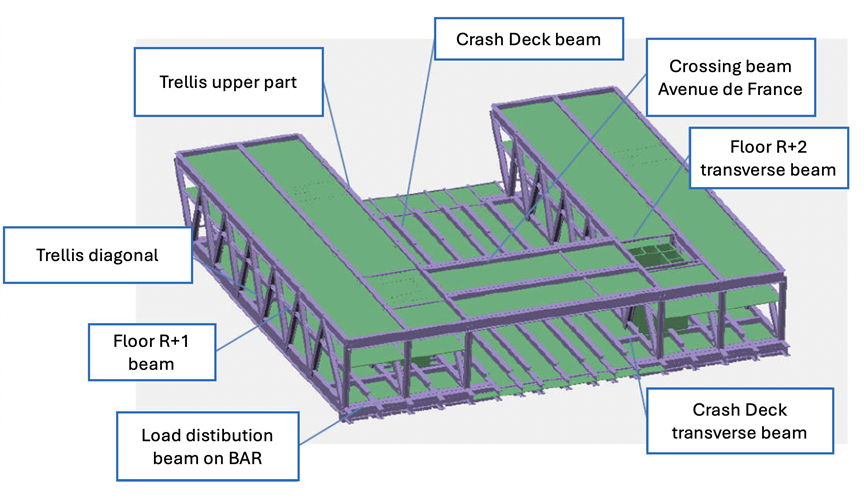 Diagram: Diagram showing the trellis structures mounted on the beams traversing the railway (mirr.eu)