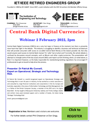 Join us on line to learn more about crypto currencies and in particular a possible Central Bank standard digital currency.