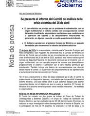 The official communique is here.  "Se presenta el informe del Comité de análisis de la crisis eléctrica del 28 de abril"