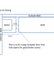My plan is to make the airing cupboard lockable, with a key (twisty security key that can be removed from the room), I believe this makes the cupboard exempt from the zoning issues I am concerned about, but I am not quite sure… whilst it will be a nightmare to move the bath somewhere else (plastering and plumbing are complete), I want to avoid nasty surprises like someone coming in later and stating that the layout of the bath and boiler breach regs, subsequently I would then need to remodel my already new bathroom.