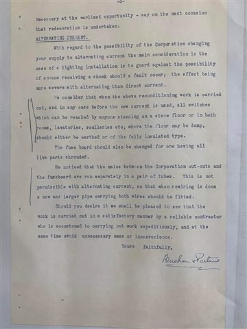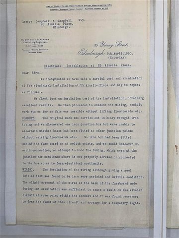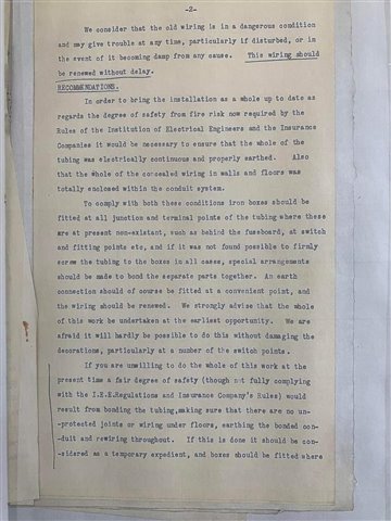 I wonder if it has been rewired again since ... Interesting to see reference to the earthing of conduits etc.My understanding was that not only were unearthed lighting circuits permitted in new designs until 1966 (quite a few are still in service), but 2 pin sockets, and therefore unearthed wiring, were acceptable in new non-lighting installations until 1937 (and there were plenty of those still in service until the 1970s).