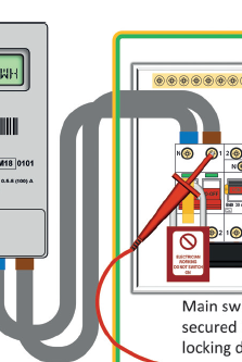 • While the polarities are correct at the meters, (although the colours/ tapes are reversed at the terminals), BOTH consumer units are indeed reverse polarity. Disconnection of the main fuse is required by the DNO, and the electrical installation given a thorough check over, including outside buildings/circuits.