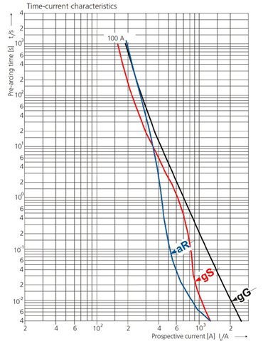 The concern is that the aR fuses are (by designation and design) not full-range, so provide fault protection only, while the contactors are only rated by the component OEM to break a certain overload current... and the fuse cut-off as for guaranteed performance is greater than the contactor break rating*. This leaves a small gap (circa 2% of the prospective fault current, or 10% of the contactor overload break rating) between the overload and fault protection functions where neither device is guaranteed to operate.