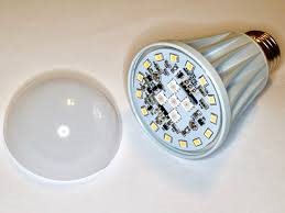 A mains voltage LED lamp has some tens of chips in series under the 'bulb' This fairly typical example has 5 hard/cool white chips in the centre, and 18 warm fluorescent type ones spaced around the periphery.