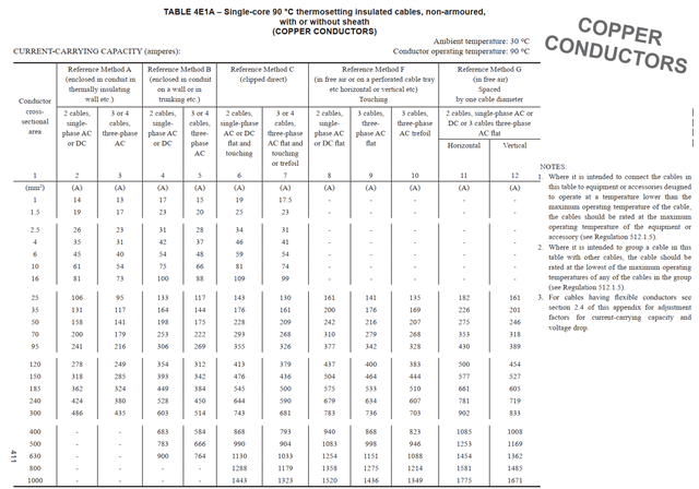 Does anyone know why there are no current-carrying capacities listed for cables below 25mm² for Reference method F in Table 4E1A?