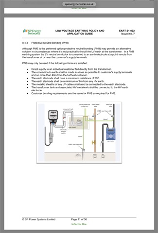 My understanding is that the TN-C-S(PNB) earthing arrangement is installed by the DNO to provide a minimum of 8.000 metres separation between the transformer HV earth system and LV earthing system provided for the customer by the DNO.