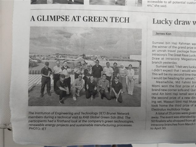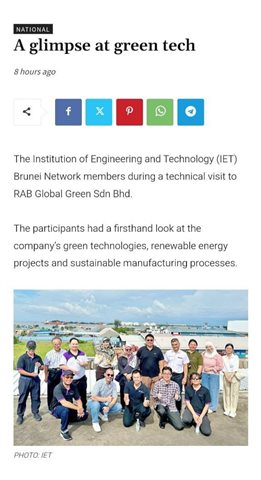 [BINA Industrial Estate, Serasa, Muara] — The Institution of Engineering and Technology (IET) Brunei Network has successfully completed a technical visit to RAB Global Green Sdn Bhd, a leading pioneer in sustainable technology and green energy solutions. This visit took place yesterday and highlighted the latest advancements in sustainable practices and technologies that are shaping the future of engineering.