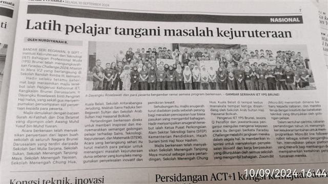 Students from eight schools on Sunday tested their knowledge and ability to innovate in this year’s Faraday Challenge, an engineering contest hosted by the Institution of Engineering and Technology Brunei’s Young Professional Section.