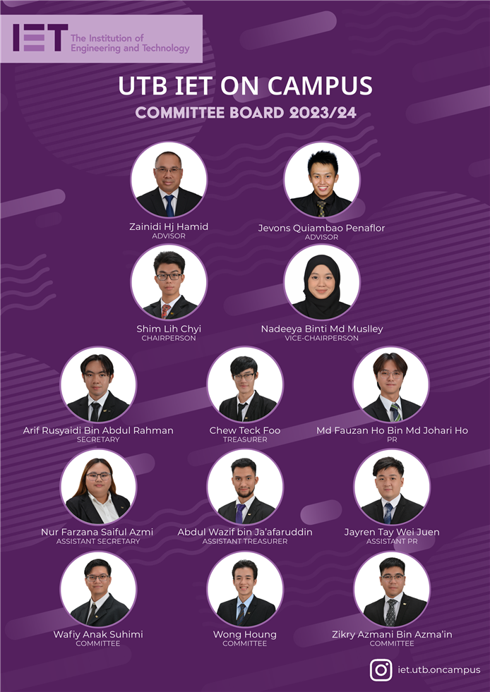 IET UTB Committee Members Wang Houng Janthip@ Wong Houng Zikry Azmani Bin Azma’in |