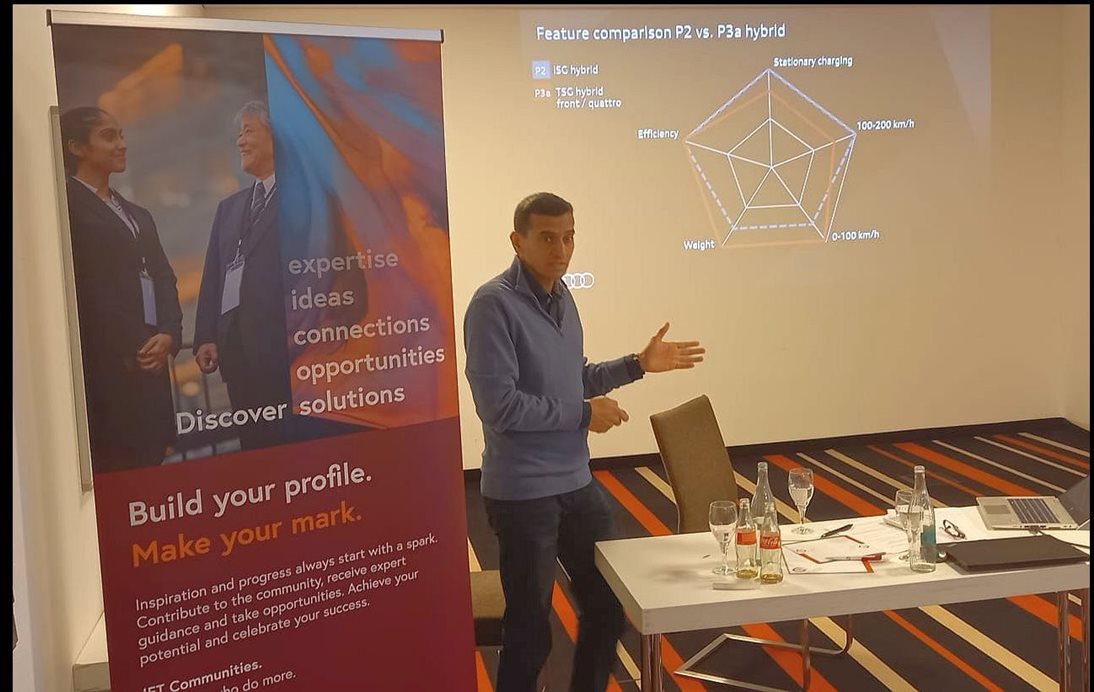 The first of two highly interesting technical talks was given by Sachin Pangaonkar, Project Leader Embedded System at Audi AG, on the development of the innovative Audi 48V Mild Hybrid Powertrain Generator, which has now reached production and is appearing in the newest generation of Audi ICE cars.