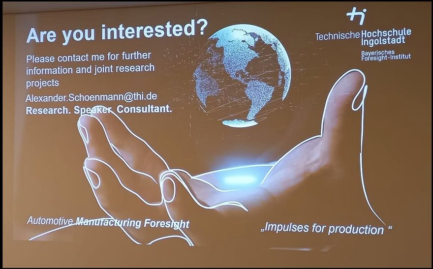 The second talk continued the automotive theme, and was presented by Prof. Dr. Alexander Schönmann of the TH Ingolstadt, addressing Automotive Production 2035 and the future of value creation, which provided an engaging overview of a number of new approaches to vehicle production.