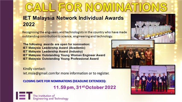 •  IET Malaysia Network Individual Awards 2022 (Call for nominations)