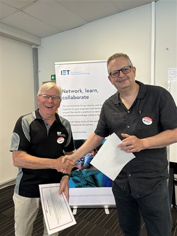 We also took the opportunity to recognise one of our Auckland IET committee members, Frank Lewis.  Frank has been a member of the IET for 50 years and a Fellow of the IET for 30 years.  In particular Frank introduced our flagship Project X programme around 2012 and since then  more than 2400 students have benefitted to this introduction to circuits, soldering and coding! Thanks Frank!