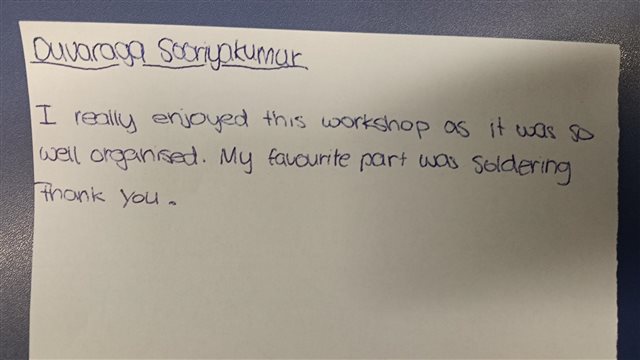 The event was greatly appreciated by teaching staff, parents, and students alike. One of the parents Dr Vaitheki Sanjee, commented “I wanted to thank you for allowing my daughter, Mayura, to attend the IET workshop. She thoroughly enjoyed the experience and gained valuable insights from it. The workshop was well-organized, informative, and she appreciated the opportunity to learn and get to know more about engineering. She mentioned that she especially enjoyed working with the soldering iron for the first time. It's great to see the engineers volunteer their time to help to future generation.”