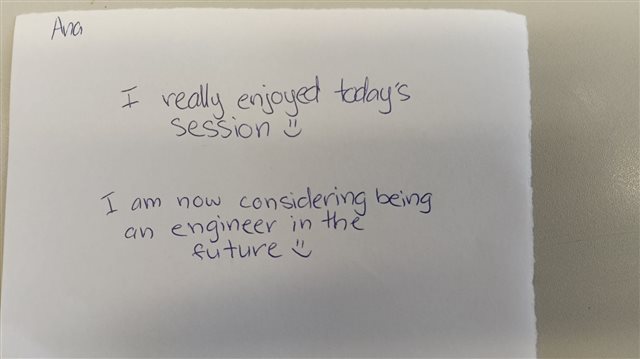 Menaka: It was a great opportunity for the kids to experience,  so we greatly appreciate this effort of getting some of them into engineering.