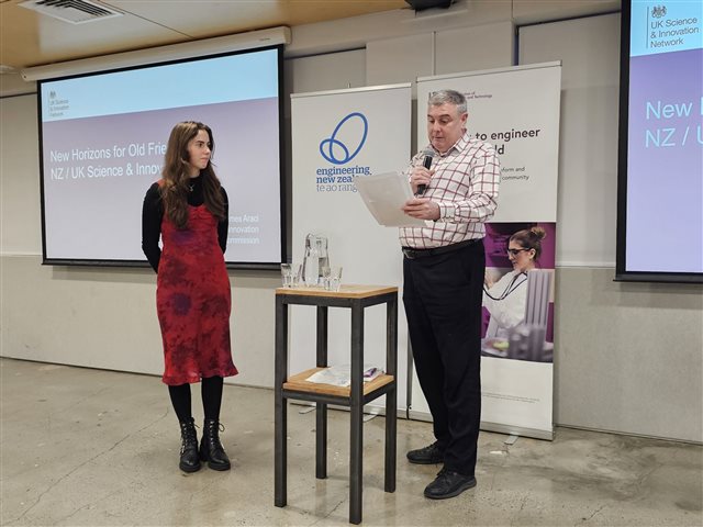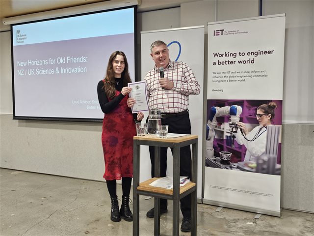 Joining us to celebrate Georgia's award was James Araci, Lead Advisor for Science and Innovation at the British High Commission (UK in New Zealand) who was presenting to our members that evening on the opportunities available for increased collaboration between UK and New Zealand science, engineering and technology organisations.