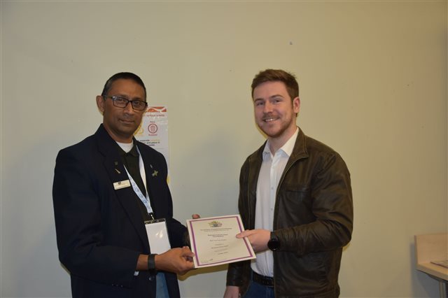 To celebrate Chris's success and present his certificate were Chris Lambell (Chair), Neil Haydon (Treasurer) and Darren Baxter (Committee Member and Former Chair).